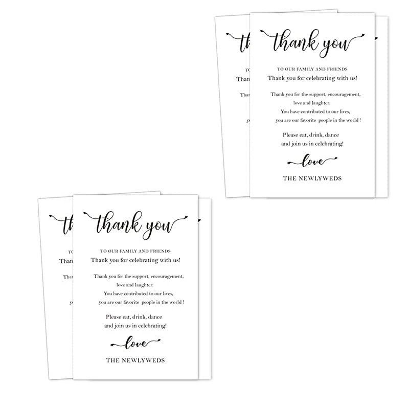 100 Wedding Thank You Place Setting Cards, Wedding Table Centerpieces And Wedding Decorations, Wedding Table Decorations, Wedding Favors For Guests, 4 X 6 In