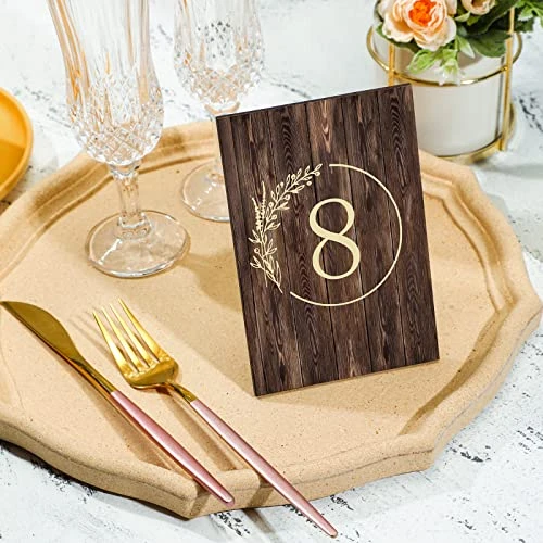 - Artistic Design: the carving numbers on these wood table numbers are surrounded by elegant leaf patterns and geometric semicircles; With classic wood colored shading, with a retro rustic flavor, exquisite and stylish, bringing good mood to your guests