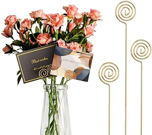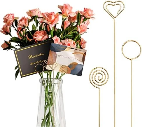 - 🍷【Elegant Design】: The appearance of the floral card holder pick is simple and elegant, 34 cm / 13.4 inches long (including the circle), the diameter of the circle is about 3 cm / 1.2 inches; there are gold/silver, round, thread type and other styles to choose from. Make your party or party more elegant and beautiful.
