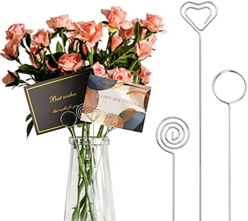 - 🍷【Wide Use】:This floral card holder picks are suitable for outdoor weddings, parties, gatherings, anniversaries, big holiday events and more. Use for dinner food logos, wedding name tags, wedding table cards, note cards, pictures, photos, memos, paper menus, business cards, message cards, etc. Make a good impression while adding a warm and elegant feel.