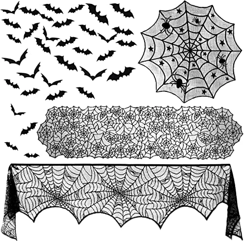 - 🎃Package includes: You will get 1pcs spider web table runner, 1pcs spider web round tablecloth, 1pcs Halloween fireplace mantel scarf and 36pcs 3D bat wall stickers, 39pcs in total. Which are sufficient quantity for using and meeting your needs