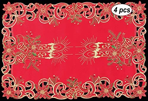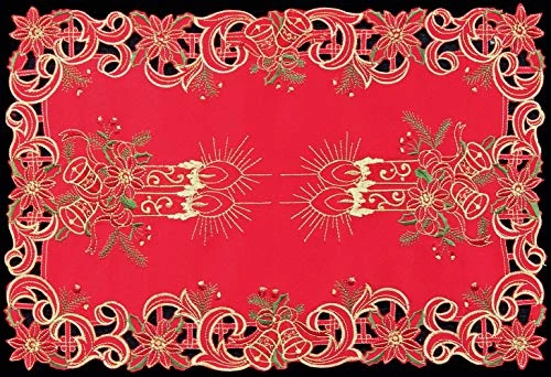 - Matching festive placemats, table runners, dresser scarves, mantel scarf, center-pieces, toppers and large tablecloths in different sizes available