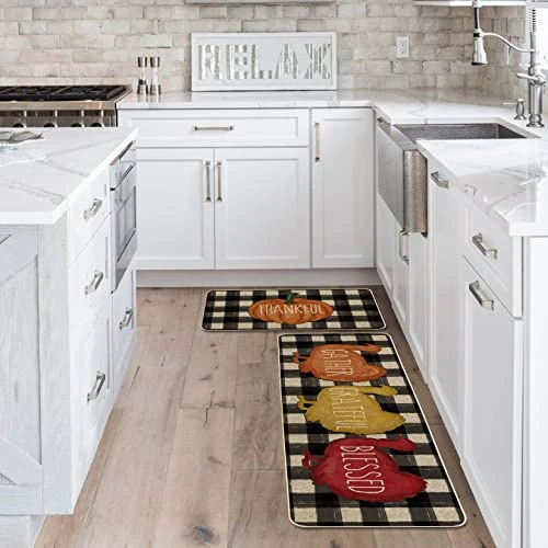 - 2 PIECES INCLUDE: Measures 17″ x 29″ and 17″ x 47″, features 0.25″ slim. One long and one short making them just the right size for the kitchen. Our stylish kitchen mats make a beautiful addition to your kitchen, dining room, craft rooms and office spaces