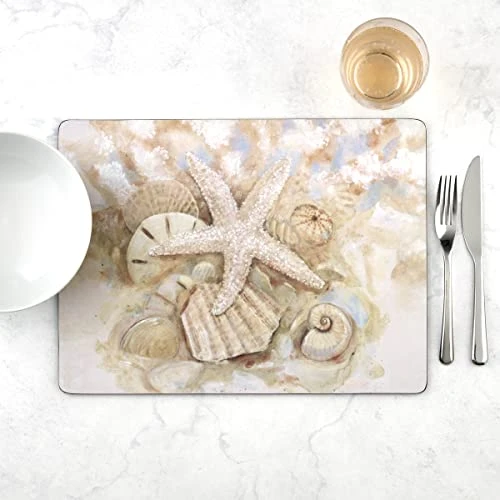 - INCREDIBLE ARTISTRY: No need to go shelling with Beach Prize, these placemats feature the best of a shell hunt. This design pairs perfectly with any existing decor, making a great addition to your home or a lovely gift to a friend.