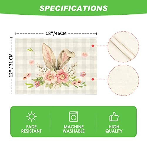 - Easy to Clean: Machine wash and lay the placemat flat to dry. Stays the same and as new after every wash. Material: 100% Polyester, no shrink, no color ran. Imported, Country of origin: China