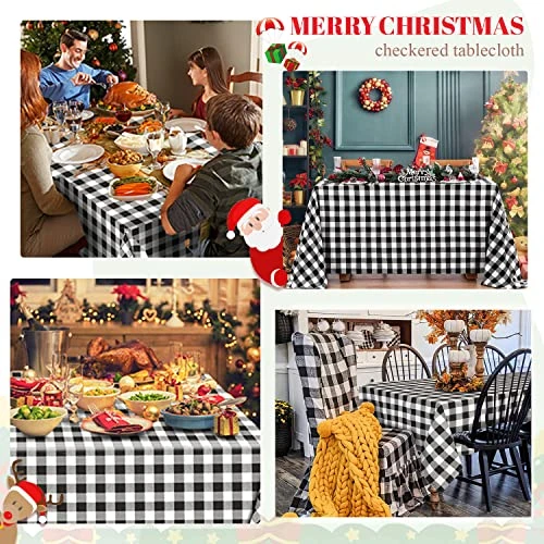 - 🎅 Black and White Plaid Tablecloth : Christmas checkered tablecloths are very suitable for the holiday theme of Christmas, creating a happy holiday and give you unforgettable memory.