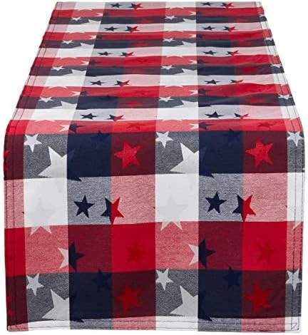 - PERFECT DINNING TABLE CLOTH – At 70 inches both in length and wide, this cotton blend tablecloth is perfectly sized for layering your table decor. Checkered star design, helps create the perfect background for any table decoration. Coordinate with wooden tones for both dishes and place settings to create a contrasting décor.