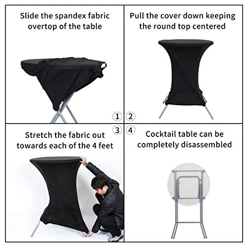 - Protective & decorative round cocktail table covers: These heavy duty universal fit stretch tablecloth covers feature stain resistant and wrinkle resistant properties that make them a perfect choice for indoor and outdoor events. They protect your high top tables from dirt, dust and scratches and embellish your events design by adding colors or textures to your tables