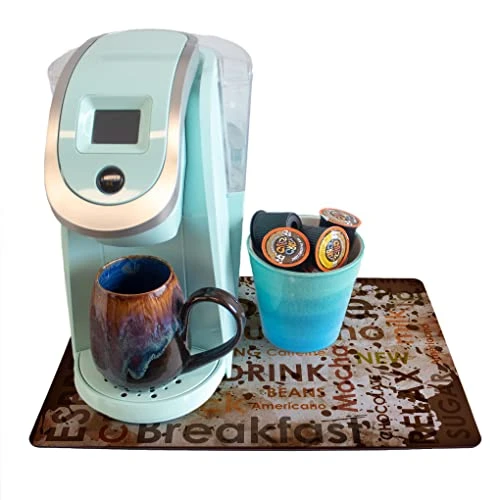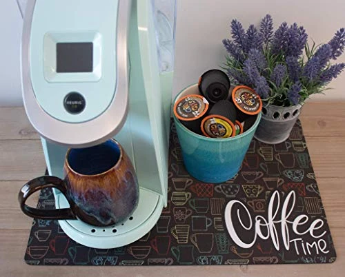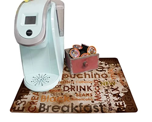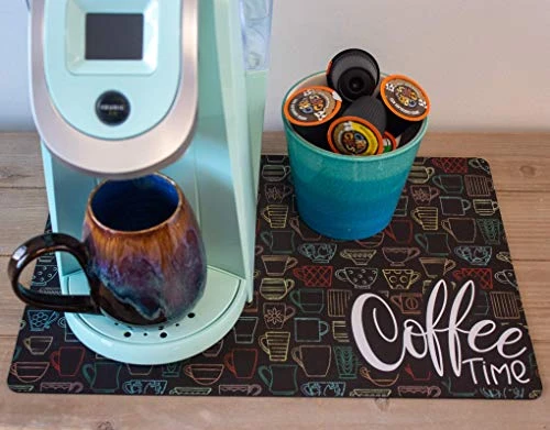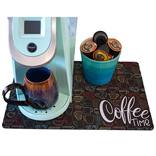 - ABSORBENT Mat to put under your coffee maker or espresso machine. Catch spills and drips, rest your spoon, or put the finishing touch on the coffee station decor.