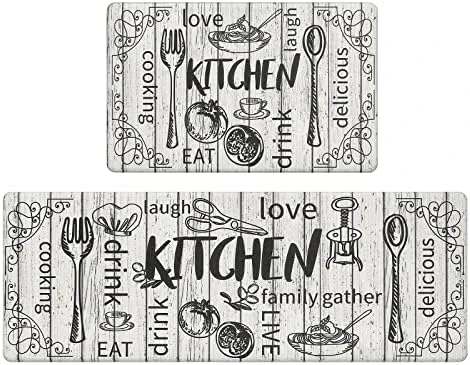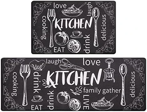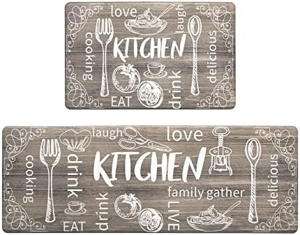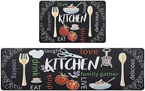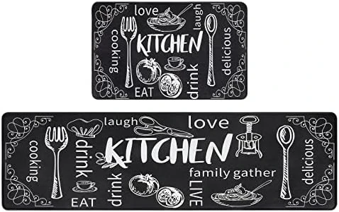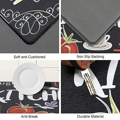 - Non-Skid Antifatigue Kitchen Floor Mat Set – Cushioned anti fatigue kitchen mats and runner sets come with non slip backing and unique beveled edges,help prevent slipping or tripping,can be used for multiple surfaces(wood, ceramic, marble, etc), very comfortable foam construction.