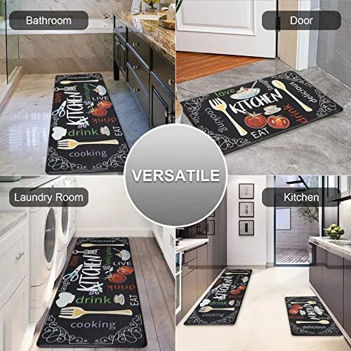- Multiple Uses Anti Fatigue Comfort Floor Mats – Anti fatigue kitchen mat rug and runner set also suitable as standing desk mat, office mat,kitchen runner mat, doormat, bedroom rug ,bathroom rug mat, kid’s room rug or other anti-fatigue mat application, provides a warm accent for the home or kitchen.
