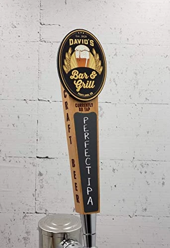 Custom Chalkboard Beer Tap Handle – Tap House Edition, Full Color This custom tap handle looks great in your home bar or office. They make excellent kegerator tap handles and can be personalized with your choice of text. This beer tap features a full color logo personalized with your text and a laser cut black acrylic back. It also has a chalkboard section to write the current brew on tap and has deeply engraved “Craft Beer” text down both sides. One of the product images shows what text can be changed. Size: 10.25” x 3.25” x 1”
