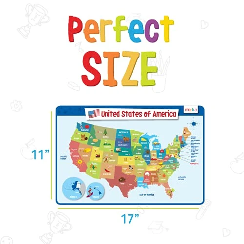 - PERFECT SIZE: These 17″x11″ laminated educational placemats are perfect for children to enjoy a meal or snack at the dining table or breakfast bar. The mats provide ample surface area for kids to eat while also serving as an educational tool with fun & colorful graphics. Made with high-quality materials, these mats are durable & easy to clean, making them a practical addition to any family’s mealtime routine. Parents are sure that their little ones will enjoy eating & learning at the same time.