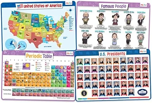 - EXTENSIVE COLLECTION OF EDUCATIONAL PLACEMATS: These placemats are perfect for toddlers, grade schoolers, and teens. With a range of topics from numbers, letters, art, science, and more, they are ideal teaching aids for both home and school use. These placemats offer a fun and interactive way for kids to learn and explore various subjects. They are durable, easy to clean, and make great gift ideas for any occasion. Choose from a variety of designs and inspire your child’s learning journey today!