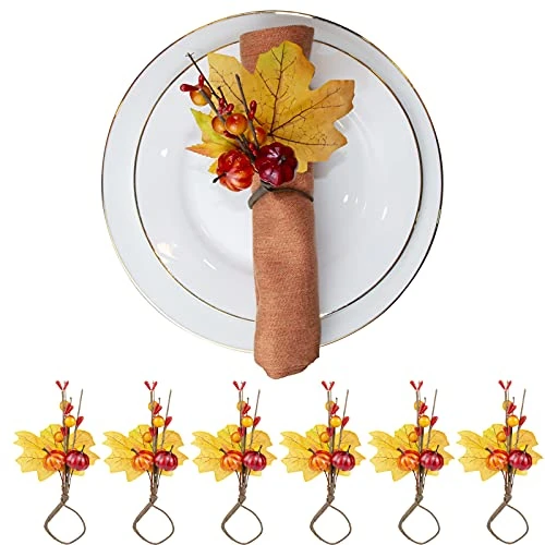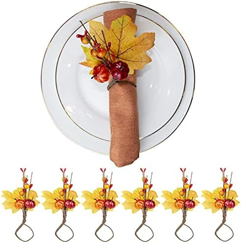 - 【Quality material】: The Thanksgiving napkin buckles with artificial maple leaves and pumpkin are mainly made of quality iron wire and silk cloth, which are reliable materials, determining the rings solid and sturdy, light in weight, not easy to break, and can last for a long-term use