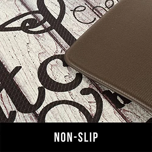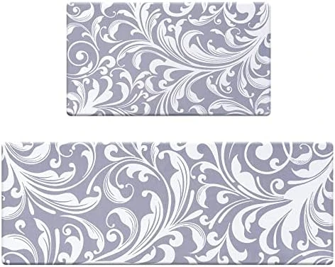 - Measures 17 x 30 + 17 x 47 inches. 0.4 inches cushioned anti-fatigue kitchen mats. Made of high-quality PVC Top and PVC foam backing. Nonskid backing holds the mat in place.