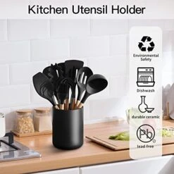 Ae Dunn Kitchen Utensil Holder, Large Spatula Holder For Countertop, Handcrafted Ceramic Crock