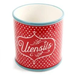 Flea Market 4-Piece Utensil Set With Crock Holder – Polka Dot