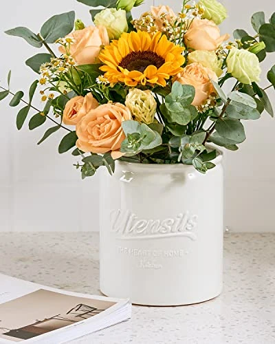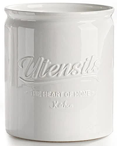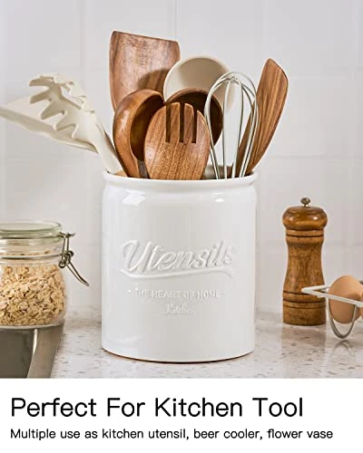 - [Stable & Durable Utensil Crock] Made of premium ceramics, this ceramic utensil holder is clearly heavier than ones made of other materials, steadily stands on your countertop; Glossy glaze & durable material, withstands long-time daily uses