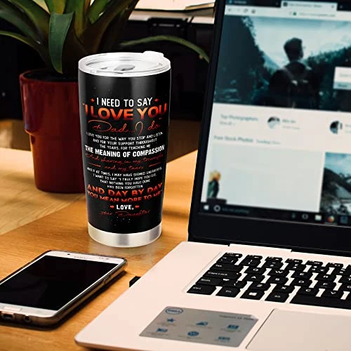 - DOUBLE WALL VACUUM INSULATION TUMBLER FOR DAD: Made with double-wall vacuum insulation, this dad cup tumbler from daughter can keep your favorite beverages hot for 8+ hours and cold for 12+ hours in normal temperature environment. Perfect Gifts for dad who travels, hold any hot coffee, iced cold fruit teas, wine tumbler,… without affecting your drink’s natural taste.