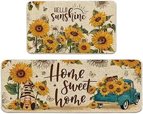 - ❤【Sunflower Rugs & Mats for Kitchen】: The sunflower kitchen rugs have a slip-resistant recycled rubber backing and polyester felt top layer. The low-profile thickness can reduce the risk of tripping, and the high-quality durable construction resists stains.
