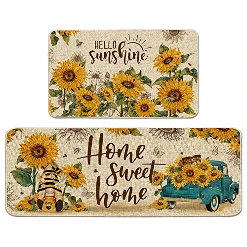 - ❤【Sunflower Decorations for Home/Kitchen】: The sunflower kitchen mats with a blue truck and gnomes printed on them, are suitable for decor your farmhouse kitchen, outdoors, bathroom, laundry, or any space in your home at any time.