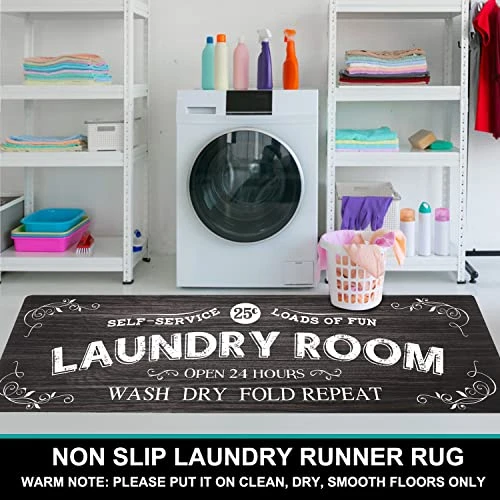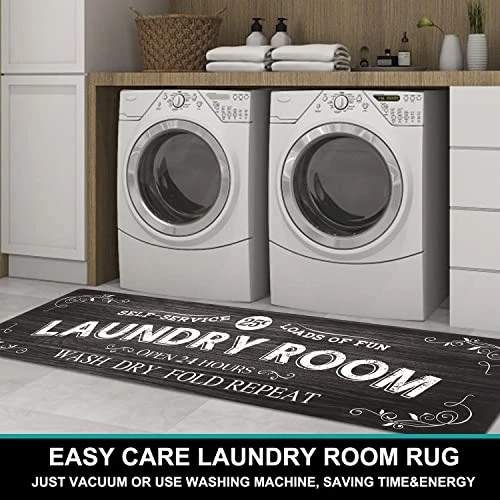 - 【NON SLIP LAUNDRY RUG】The rubber backing and heavy weight of this laundry floor mat make it stay in place on various floors, providing safe traction, and ensuring the safety of your family and pets. WARM NOTE: Please put the laundry runners for laundry room on clean, dry, smooth floor only, otherwise, it might slip.