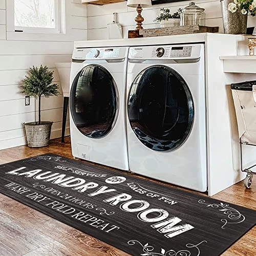 - 【VERSATILE LAUNDRY MAT】The versatile and practical laundry room rug runner is not only perfect for your washer and dryer in laundry room, it is also wonderful to be used as kitchen rug, hallway runner rug, bathroom rug, etc. Moreover, you can take it as gifts for your beloved family and friends as well. Very functional and worth-buying!