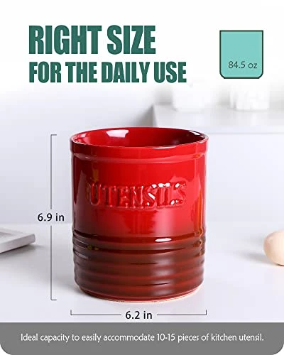 - Versatile: This elegant ceramic crock is multi-functional. The modern kitchen tool holder can be used as a utensils holder, beer cooler with ice in or flower vase, and more