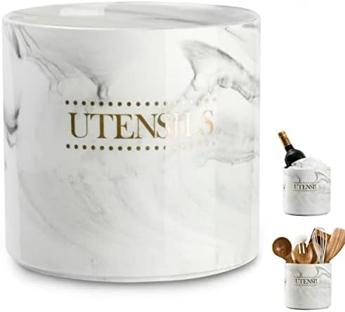 - More Features: This utensil holder can not only store spatulas, spoons, tongs, peelers, and knives but also brushes, whisks, can openers, and ladles. The cooking utensil holder for kitchen counter can also be used as an ice bucket to freeze wine, and whiskey, and even as a vase.
