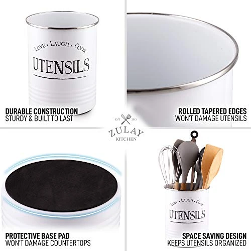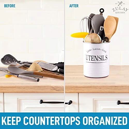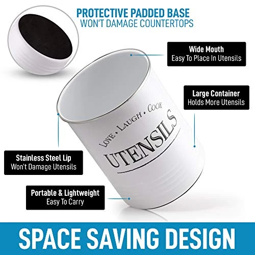 - LONG-LASTING QUALITY: Thoughtfully made from food-grade iron with non-toxic powder coating, this durable and rust-resistant silverware holder is guaranteed to last you a lifetime. The edges of this white utensil holder are rolled up to protect your kitchen tools from damage. This kitchen utensil holder is designed with a smooth surface making it easy to clean.