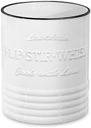 - This ceramic utensil holder weights over 3.3 lbs, making it very hard to fall over even holding plenty kitchen accessories. Super easy to clean; Take care of it just like your other dishes.