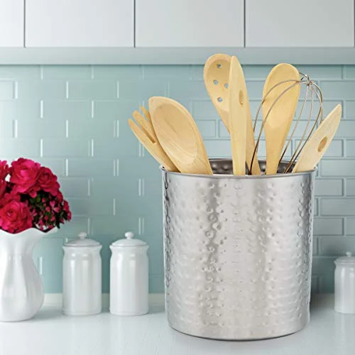 - The Jumbo Hammered “Brushed Nickel” Utensil Holder by Old Dutch is a decorative and convenient solution to storing your favorite spatulas, spoons and other cooking utensils easily at hand