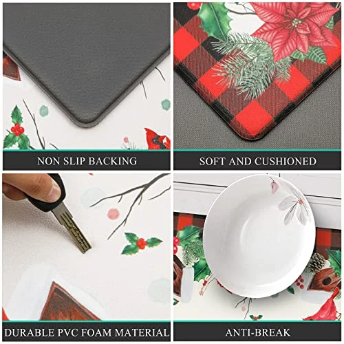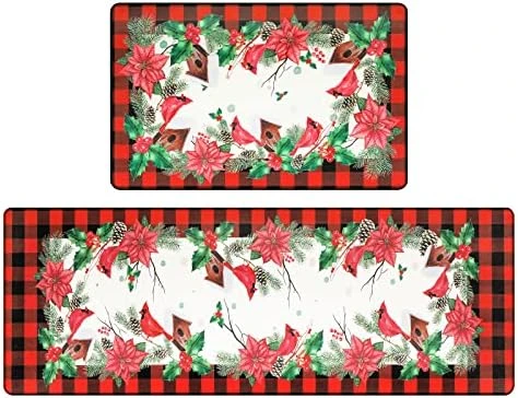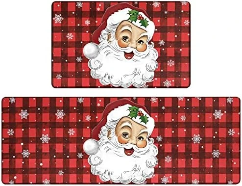 - Non Slip Christmas Decor Kitchen Runner Rugs Set: Our kitchen rugs and mats set is designed with advanced beveled edge and non skid backing to protect you from tripping and slipping. PVC memory foam comfort kitchen floor mat set is cushioned enough to bring comfortable support but not too thick to be a tripping hazard. Heavy duty farmhouse red buffalo plaid kitchen rugs will not slide under its weight.