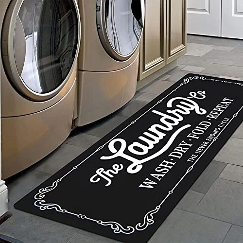 - Versatile Use: Great floor carpet rug runner for kitchen floor in front of sink, laundry room in front washer or dryer, door entrance, hallway, wash room, bathroom floor beside the tub, garage. Very cute rug that is also comfy and durable!