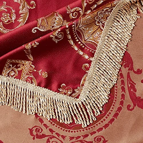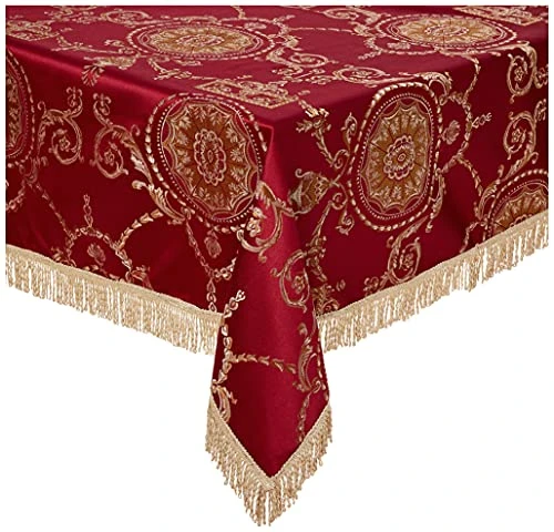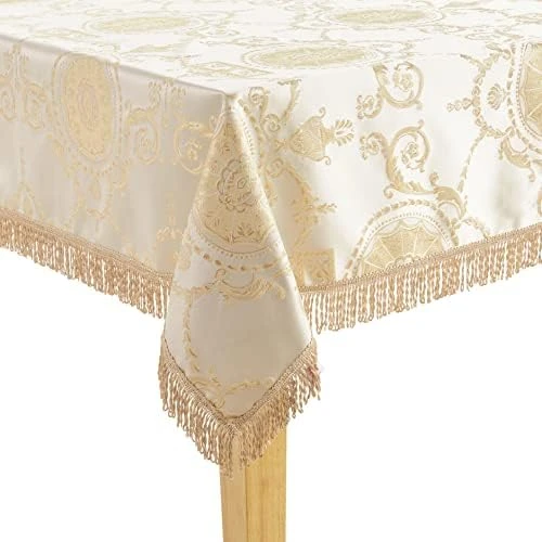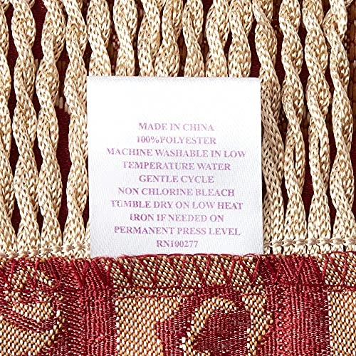 - Kitchen accessory is accented with a border of gold fringe