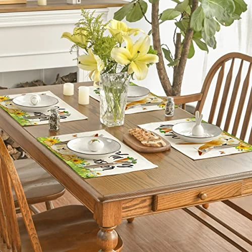 - Easy to Clean: Machine wash and lay the placemat flat to dry. Stays the same and as new after every wash. Material: 100% Polyester, no shrink, no color ran. Imported, Country of origin: China