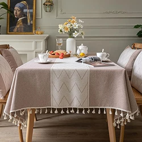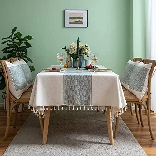 - Unique design:Cotton linen tablecloths with delicate embroidery patterns and beautiful fringed edges. Add a touch of elegance to your room while protecting and decorating your table, making your meal more enjoyable