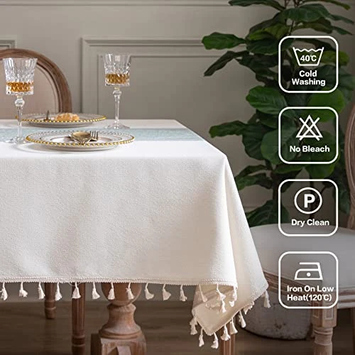 - 【WATERPROOF & EASY CARE】The waterproof coating added to these table cloths makes them an excellent choice for waterproof table covers. These table cloths are also effortless to care for and can be machine washed in cold water. After the first wash, they feel even softer. They can be tumble dried on low temperature, and ironing is optional.