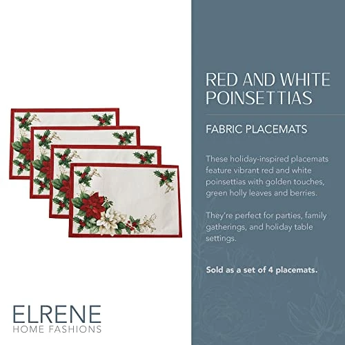 - ELEGANT CHRISTMAS TABLE SETTINGS: Gather and make memories with these beautiful placemats. Our festive table mats feature a classic Christmas design with red and white poinsettias.