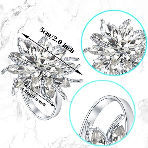 - ✔【Premium Material】These rhinestone napkin rings are beautifully made of zinc alloy material, luxury crystal rhinestones, nickel free, mixed together to create a distinctive napkin ring with a delicate lotus flower. very strong and will not be deformed easily. The silver plating on the napkin ring is firmly colored, so you don’t have to worry about fading