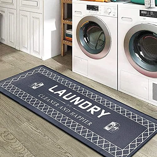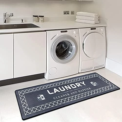 - 【Anti Fatigue Design】:The 0.4IN much thicker heavy duty cushioned high density rebond PVC leather foam anti fatigue runner mat and rugs can provide sufficient support for standing for a long time and help relieve the pressure on the feet, knees and joints. It can relieve fatigue and keep you comfortable when working in the laundry room.