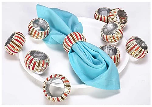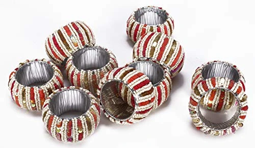 - CONTENTS: Package contains 12 (Twelve) Hand Crafted Multi Sequin Beaded Napkin Rings.