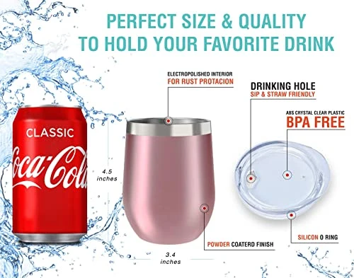 - Your 100% Satisfaction Is Our Top Notch! We walk the extra mile to ensure our customers’ complete satisfaction. This is why we back our 12 oz. stainless steel wine tumbler glass with 100% satisfaction guarantee and prompt, friendly Customer Service, to help you buy with confidence. If you are not positively thrilled with our 12 oz. insulated wine tumbler with lid, just let us know and we will make things right for you! – Hassle free!
