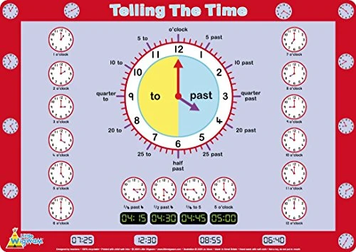 - Each clock face has corresponding text beneath