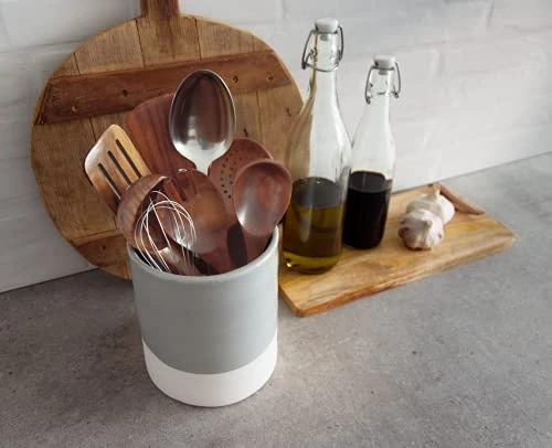 - Elegant Swiss design – sleek meets rustic with a unique handcrafted look – perfect in both modern and farm-style kitchens – the glossy gray glaze and matt natural white blends in with almost every color scheme and matches the gourmet goose spoon rest